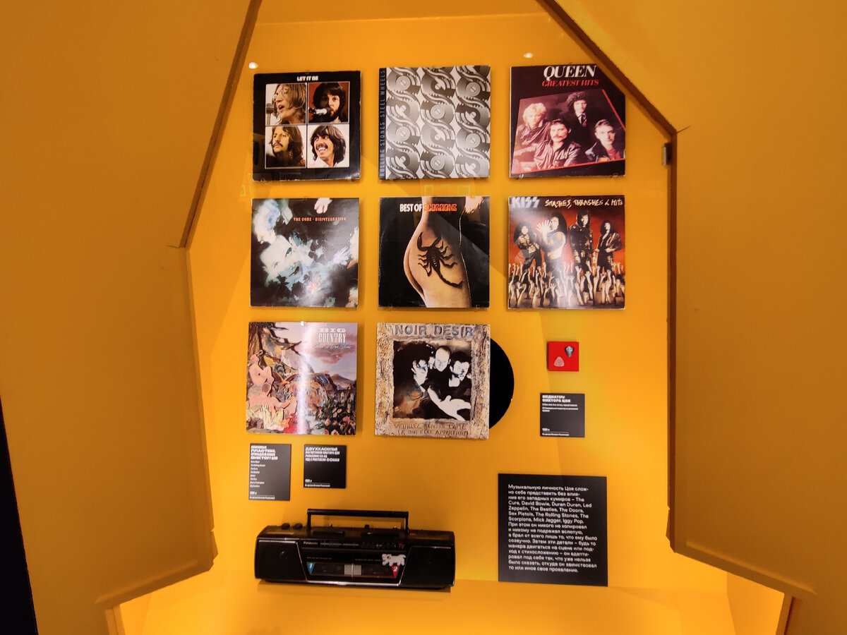 Всем добрый день. Мне очень повезло посетить выставку посвященную Виктору Цою в Москве которая проходила в Манеже. Эта была самая масштабная, мультимедийная выставка в России где были собраны все до единого артефакты группы Кино и Виктора Цоя. Все архивные записи можно было прослушивать поднеся телефон к NFC меткам так как в самом начале выставки давали телефоны с наушниками. Так же в следующем зале была представлена котельная "Комчатка" в следующем зале меня впечатлили его гитары. Так же один зал был посвящен его картинам. Виктор очень любил рисовать, но он не умел. Поэтому это выглядело, примерно, так... так же был зал посвященный кино..это фильм "Игла" и "Асса") было очень интересно ) Больше всего понравился зал посвященный юбилейному туру КИНО в 1990 году который закончился в Лужниках В этом туре группа дала около 80 концертов. Были выложены даже раритетные авиабилеты. После трагической смерти Виктора Цоя осенью группа в память о нем выпускает последний альбом и называют е