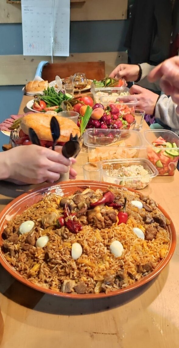 Приветики мои дорогие! Как ваши дела? Как и обещала, пишу вам отчёт, как на день рождения Айчурук ходила. Сам праздник проходил днем, я собралась и поехала в кафе. Решила сильно ненаряжаться, чтобы не выделяться. Только бусы синие надела, и туфли на каблуке. Мы договорились с Лариской вместе ехать, чтобы веселее было, она кстати уже подшафе приехала. Вот такой стол нас ждал (было 2 таких стола). Сначала мне было неудобно, а потом я расслабилась, и мне стало весело. Нигора и Айчурук пели песни и танцевали. Подарили подарок большой от всех нас, цветы и карточку в магазин. Ильшот тоже был, все время рядом с нами сидел, но особо не приставал разговорами. Наелась я вкусняшек, и потом тоже потанцевала немного. Девочки спрашивали, почему я не замужем ещё, и почему детей у меня нет. У них девушки рано замуж выходят. И даже предлагали мне жениха подъискать, но я отказалась. Домой приехала довольная и отдахнувшая) А вот Лариска сильно перегуляла, домой еле шла, но доехала домой, смс п