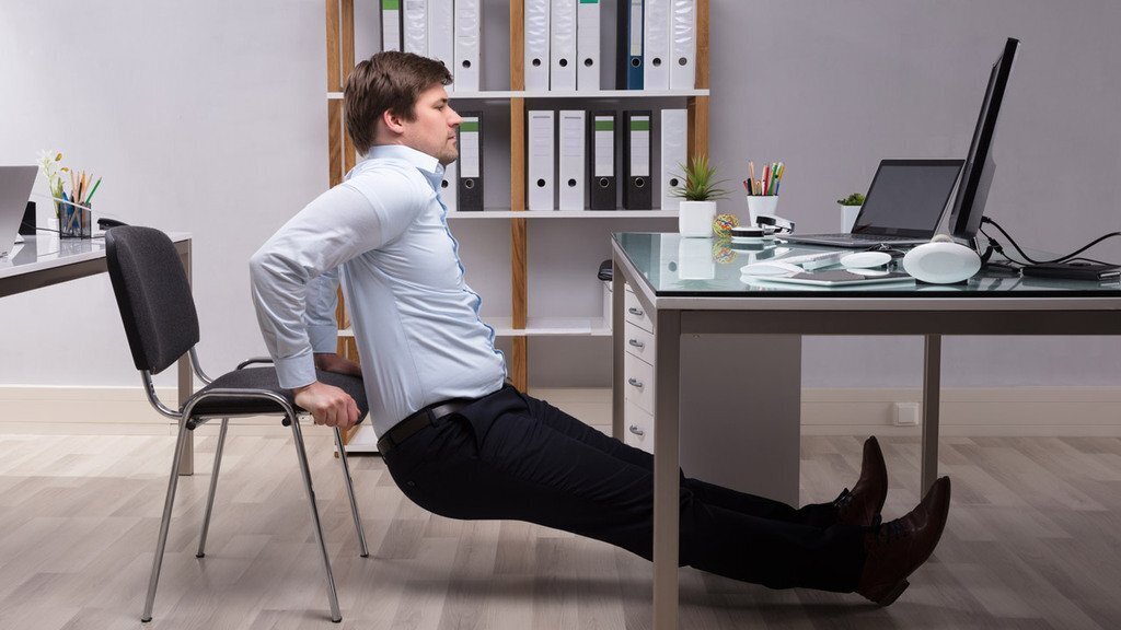 Для выполнения кратковременной тренировки в условиях офиса на переодевание времени нет. Понятно, что разминаться вы будете в той же одежде, в которой пришли на работу. Поэтому мы подготовили комплекс, который можно выполнять в любой форме. Правда, обувь на высоком каблуке все же лучше снять.