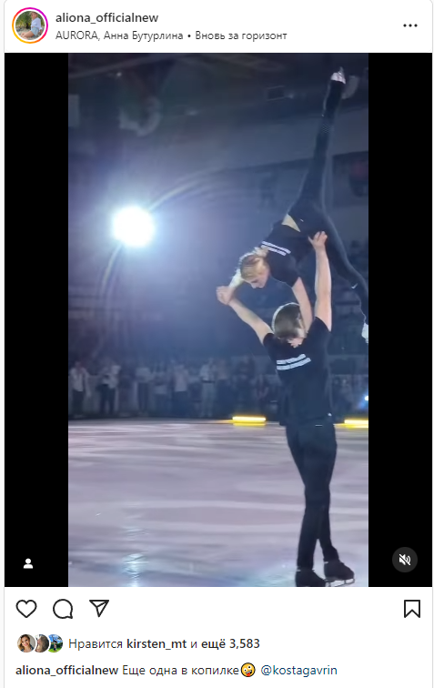 Чемпионка Европы по фигурному катанию Алена Косторная исполнила парный элемент. Во время шоу «Союз чемпионов» в Краснодаре фигуристка сделала поддержку с Константином Гавриным. «Еще одна в копилке», – написала Косторная в соцсетях.