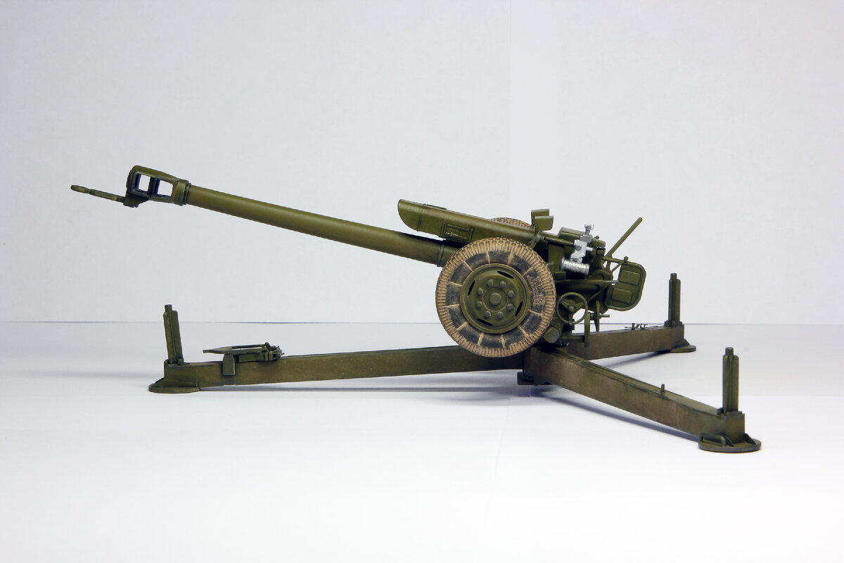 Некоторое время назад ко мне обратился друг с просьбой собрать старенькую модель гаубицы Д-30 украинской фирмы "СКiФ". У меня как раз ожидался ряд свободных вечеров, и я согласился. Тема, как известно, совершенно не моя - я не силён ни в матчасти, ни в методах окраски (в том числе сложного "обгадинга", характерного для моделей наземной военной техники), что делало мою задачу значительно сложнее и интереснее. В качестве учебных материалов пришлось обратиться к многочисленным видеороликам в интернете. Сборка не вызвала особых затруднений, если не считать огромного, просто чудовищного количества утяжин (которые, разумеется, пришлось зашпатлевать). Также в глаза бросилась масса упрощений, которые значительно снижают копийность готовой модели. И это при том, что модель комплектовалась достаточно неплохим фототравлением. Но поскольку передо мной не ставилась задача доведения модели до идеального соответствия прототипу, то я собрал всё "из коробки". Отверстия в сошниках сверлить не стал - вря