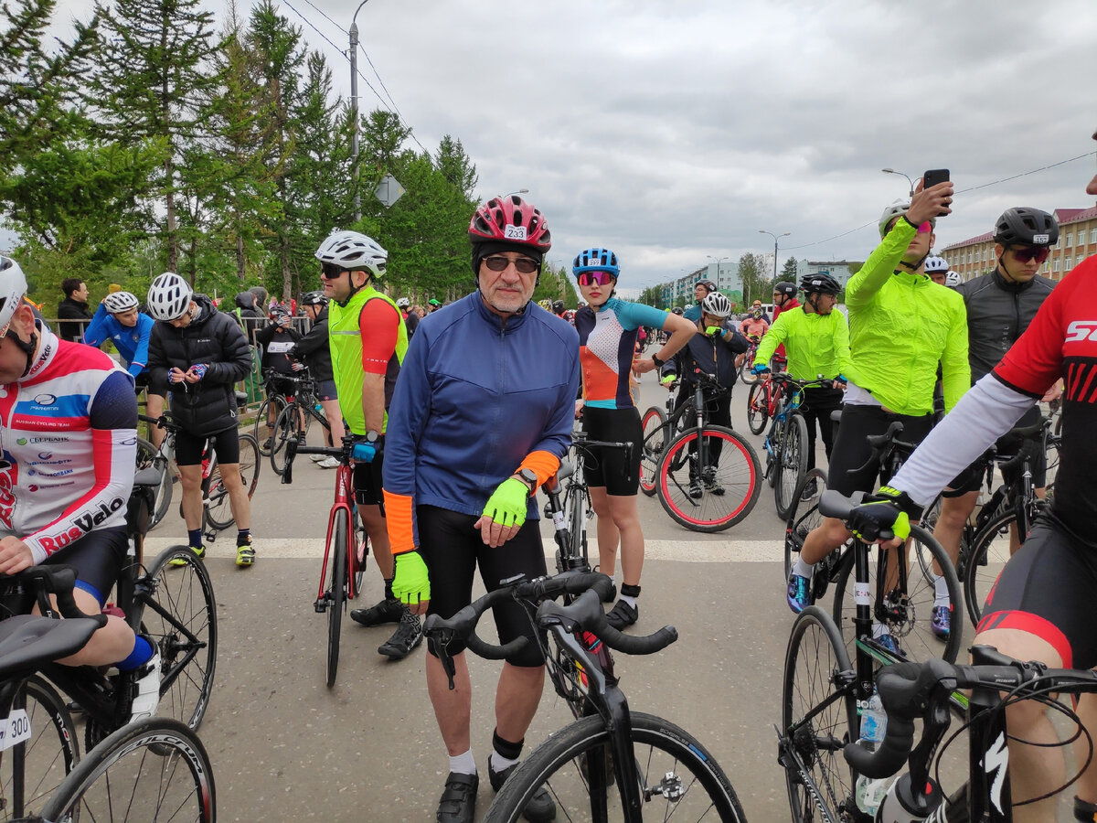 На этот раз обошлось без неожиданностей и сюрпризов, поездка была заранее спланирована и колесо на старте не спустило как в Хвалынске. И вот мы со Светой стоим на старте велогонки в толпе велосипедистов. Ну как, мы? На старте стою я, Света со своим электровелом стоит рядом, она не регистрировалась на гонку, т. к. электровелы по положению не допускаются. Ты сколько будешь ехать свои 50км, два часа? - спрашивает Света, - Я поеду по городу покатаюсь, пофоткаю. Красивый город, мне понравился. К твоему финишу вернусь. Ладно, - отвечаю я. Объявляется обратный стартовый отсчет, Света отходит в сторону. Запускаю часы — Три, два, один — Поехали. Начало идет в легкий подъем, группа шоссейников-спортсменов уезжает вперед, остальные начинают постепенно растягиваться. Кручу легко, т. к. на старте успел остыть на холодном ветру после разминки. 2 км, разворот, теперь под легкий спуск, хотя ветер теперь встречный. Немного прибавляю, начинаю догонять тех, кто перебрал со скоростью в начале. Приближаемс
