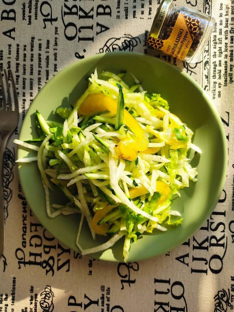 🥗Свежий салат с дайконом, огурцом, перцем и салатом айсберг