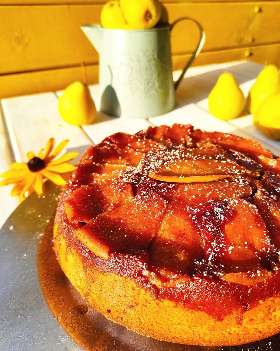 Пирого-Перевертыш с карамелизированными Грушами. Сколько готовила и даже не задумывалась, что этот пирог во Франции известен как ТАР ТАТЕН. Правда французские кондитеры готовят его из слоёного теста, в моем рецепте используется тесто больше схоже с кексовым. Но от этого он ничуть не проигрывает, пирог получается воздушным, влажным с грушевым ароматом. Мммм.... Это стоит попробовать. У нас такой пирог всегда уходит быстро. Рецепт рассчитан на форму диаметром от 20-22 см ( если хотите более высокий пирог, то берите форму диаметром 20 см, если любите когда начинка и тесто одной высоты - то 22 см) Для начинки: 🍐 груши среднего размера - 5-6 шт 🍐 сахар 120 гр 🍐 орехи грецкие, пекан - 50 гр 🍐 масло сливочное 1 ст.л. 🍐 корица - 1 ч.л. Для теста: 🥧 мука -170 гр 🥧 яйца - 4 шт 🥧 масло - 150 гр комнатной температуры 🥧 сахар - 120 гр. 🥧 миндаль - 80 гр ( можно уменьшить, но в таком же количестве добавить пшеничной муки) 🥧 разрыхлитель - 1 ч.л. 🥧 кардамон - 1/2 ч.л. 🥧 соль - 1