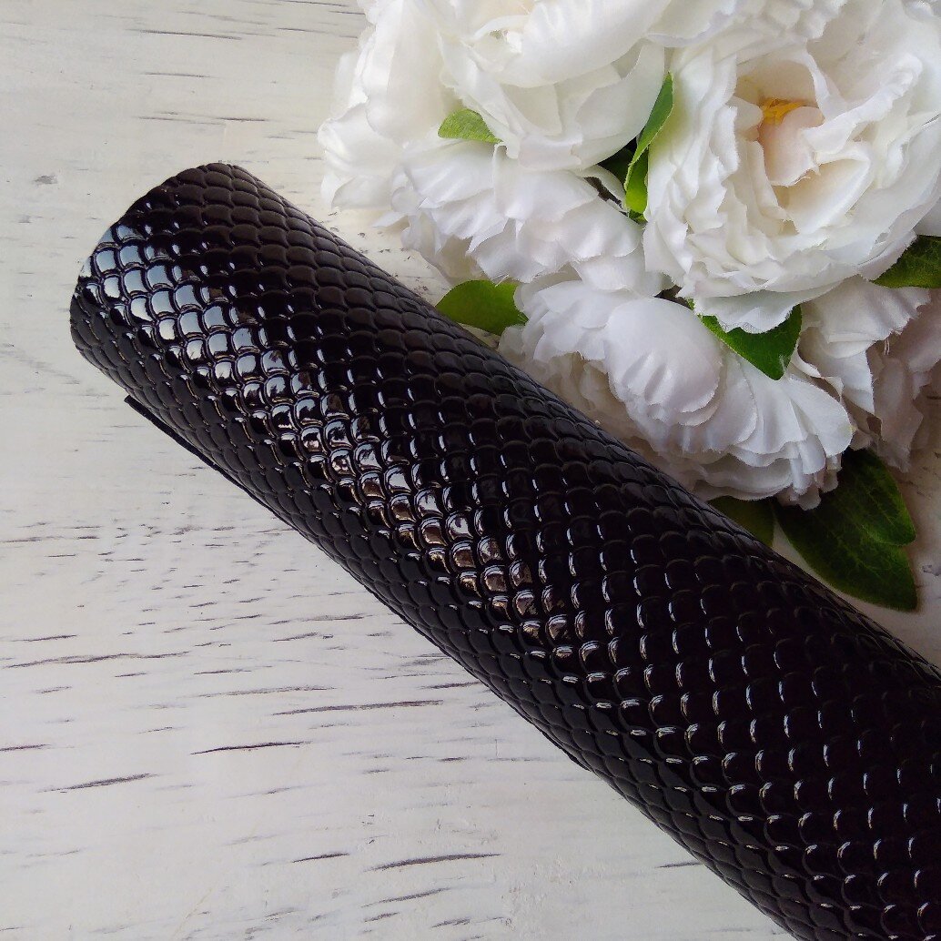 Кожзам, или искусственная кожа – относительно недорогой искусственный материал,имитирующий натуральную кожу. Главным достоинством является практичность и износостойкость. В моем виде рукоделия кожзам просто не заменим, потому что смотрится просто нереально красиво. Цветовая гамма данного материала настолько разнообразна, что можно подобрать практически любой цвет. Разновидности кожзама в рукоделии: Сегодня, мы с вами поговорим о разновидностях кожзама именно в моем виде рукоделия, а именно в изготовлении резинок. Когда не особо касаешься этой темы, не задумываешься, какое разнообразие существует данного материала. Поэтому давайте узнавать. Начнем, пожалуй, с такого кожзама, как кожзам с изображением чешуи. Это ламинированная однотонная кожа с нанесенным рисунком чешуи. Выглядит очень реалистично и действительно похожа на сказочный хвостик русалочки. Один из моих любимых видов это кожзам с крупным глитером. Вот так она выглядит. На ощупь она шершавая, но блестки все приклеены надежно, и