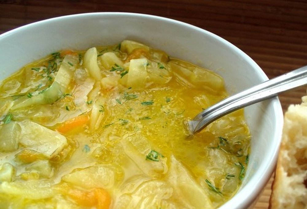 Луковый суп с капустой и лимоном