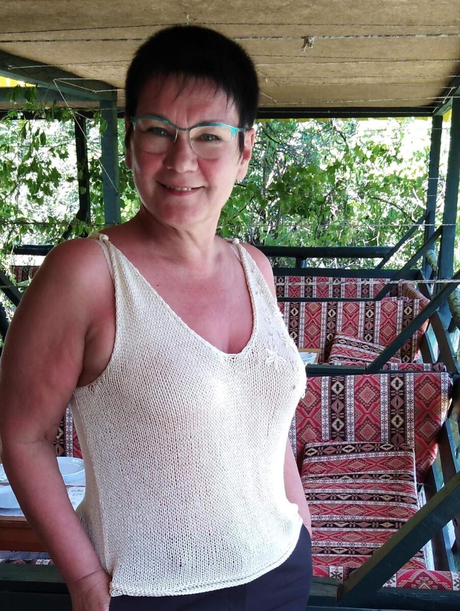 Майка на жаркое лето выполнена из 100% шелка. Пряжа "Rowan Truesilk". в 50 граммах 150 метров. Состав: 100% шелк малбери. Пряжа не бюджетная. Нить представляет собой плетёный шнурок, переливается естественным блеском . Это самый качественный вид шелка. Лицевая гладь не косит. Низ изделия обработан крючком, второй ряд выполнен люрексовой ниточкой. Ещё захотелось украсить майку чем-нибудь. Сделала небольшую вышивку на одной стороне бретели той же нитью и люрексом. В этом вязаном изделии не жарко. Вещь изящна и драпируется. На ощупь изделие приятное, в нем как будьто прохладно. Летом очень комфортно. Конечно же стирать нужно с осторожностью и только вручную. После стирки изделие вытягивается в длину, петли расправляются. Полотно становится мягким, шелковистым. Но самое интересное что я очень хотела связать платье из 100% шёлка и заказала упаковку этой пряжи ( 10 шт ). А получилось и платье и майка. Платье из пряжи "Rowan Truesilk" скоро представлю вашему вниманию. Оставайтесь со мной.