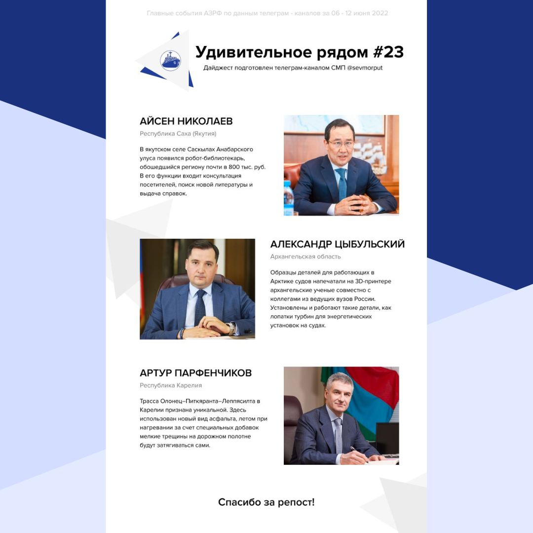 Образцы деталей для работающих в Арктике судов напечатали на 3D-принтере архангельские ученые совместно с коллегами из ведущих вузов России. Установлены и работают такие детали, как лопатки турбин для энергетических установок на судах. Кроме того, проводят исследование системы удаленной диагностики состояния судового оборудования, что повлияет на повышение эффективности и безопасности. Артур Парфенчиков