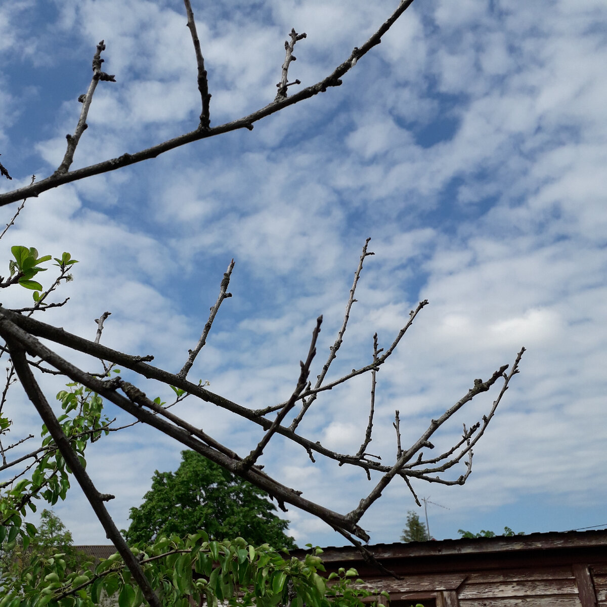 Вот такую картину я обнаружил на своей сливе, которой уже 20-ть лет, в конце мая.На заднем плане можно видеть грушу всю покрытую листьями а со сливой беда.Кроме отсутствия листьев на стволе и ветках были многочисленные потеки смолы.По научному болезнь называется камедетечением а я помню, как бабушка в деревне это плакучестью.Причин возникновения камедетечения много.Это это повреждение корней и коры дерева, переизбыток влаги и нехватка микроэлементов.Важно что это грибковое заболевание и то, что если вовремя начать лечение дерево можно спасти. Первое ключевое слово это "Грибковое заболевание" поэтому нам потребуется противогрибковая обработка.Существует множество препаратов от грибка таких как, например, Скор или Актара, но я предпочитаю проверенный временем Медный купорос. Заболевание протекает внутри дерева и поэтому для зачистки пораженных участков нам потребуется садовый нож.Я использую нож с закругленным лезвием поскольку помимо зачистки нам нужно будет вырезать точечно гнилые гла