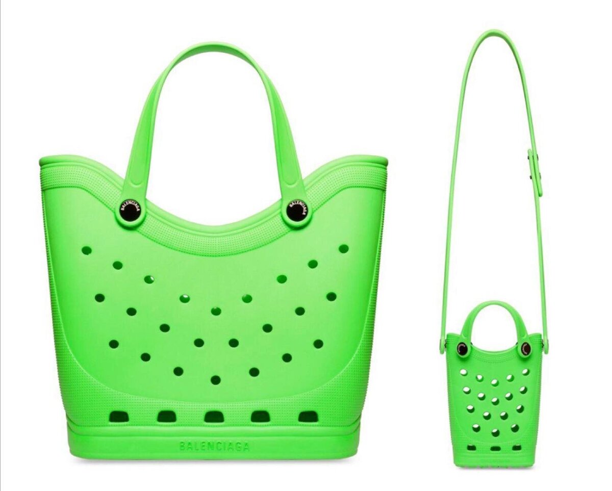 Коллекция доступна в зеленом, розовом и черном цветах. После выпуска обуви с Crocs Balenciaga продолжил сотрудничество с брендом. Crocs Large Tote Bag и Crocs Phone Holder With Strap от роскошного модного Дома сделаны в Италии и представлены в ярком зеленом, розовом и черном цветах. Созданная из той же 100% резины EVA, что и обувь Crocs, большая сумка представлена с открытым верхом и двумя ручками. Модель украшена множеством отверстий, фактурной отделкой и лаконичной надписью BALENCIAGA. Следующим элементом серии стал футляр для телефона, дополненный регулируемым ремешком и рельефными заклепками с логотипом.