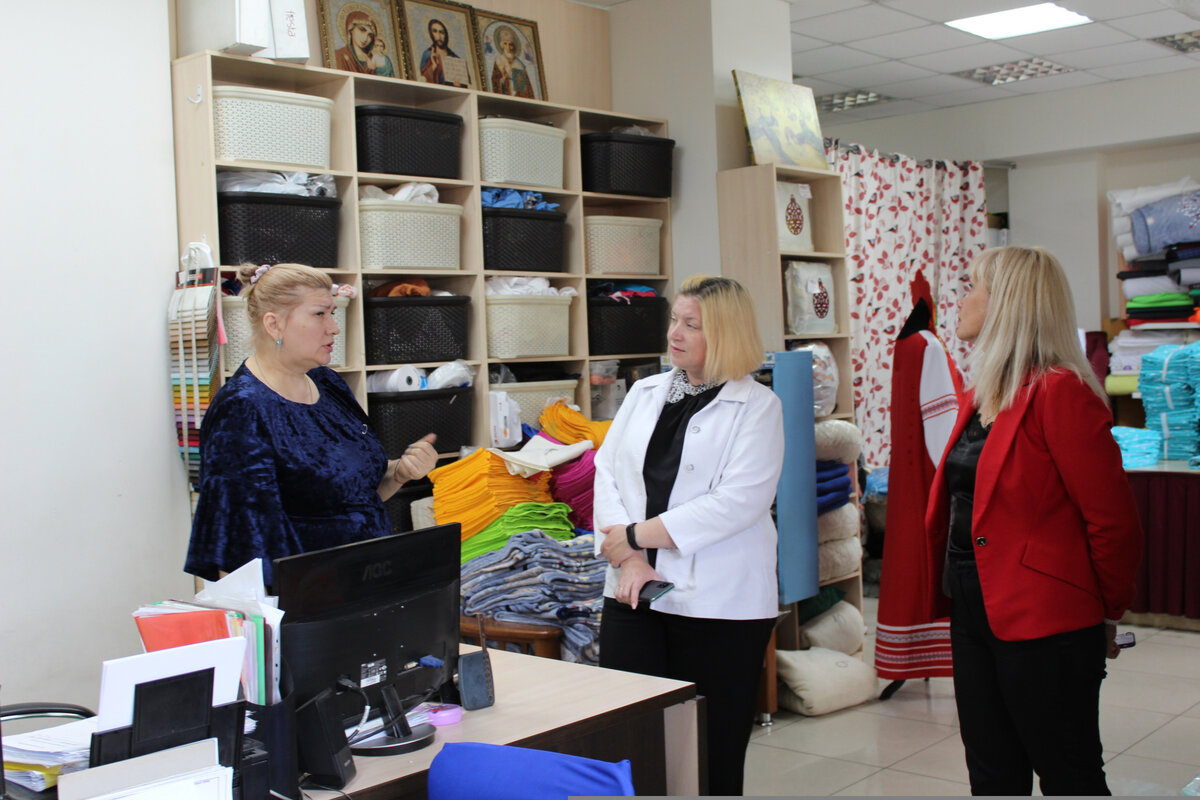 Это ателье замкнутого цикла известно не только жителям Абакана, Хакасии, но и далеко за пределами республики уже более 17 лет. Ровно столько Оксана Купцова развивает бизнес по пошиву и ремонту одежды, школьной формы, национальных костюмов, чехлов для мебели, постельного белья, даже юрт и одежды для сцены Домов культуры — одним словом, всего, что сделано из ткани. Результат высок: сегодня это, пожалуй, единственное производство в Хакасии и на юге Красноярского края со столь широким выбором предлагаемых услуг. Стоит сказать о партнерах компании, чтобы стало понятно, какого качества продукция здесь производится. Оксана Купцова отмечает: — Более 90 % поставок — российские мануфактуры. Я люблю Россию, я поддерживаю российского производителя, знакома с производственными циклами, уверена в качестве ткани. Оксана Викторовна показывает тюки ткани на стеллажах заместителю главы города Веронике Виницыной и начальнику отдела развития предпринимательства и потребительского рынка КМЭ администрации А