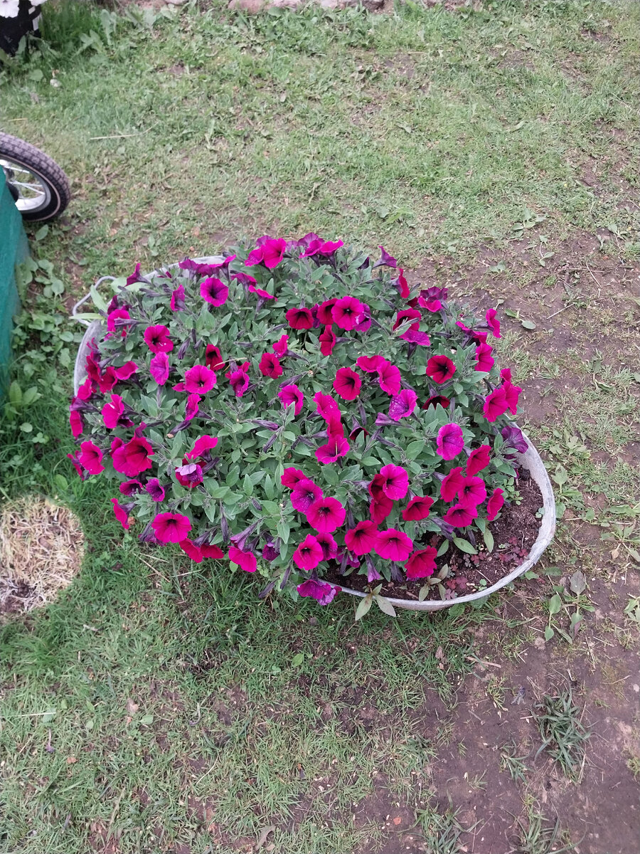 На днях я услышала следующий вопрос: А наверное много цветов нужно посадить в ёмкость для такого пышного цветения? Сколько у тебя там посажено? Для меня этот вопрос звучал очень странно. В каждой ёмкости только одно растение и только в длинном подвесном ящике их у меня два. Нет никакого смысла сажать по много растений в одну ёмкость ведь при должном уходе достаточно одного растения в соответствующей для него таре и пышное и обильное цветение вам гарантировано. Сажать в одну тару несколько растений имеет смысл только суммируя объем на каждое растение: например вы хотите микс из 3 разноцветных петуний и на каждую из них нужен объем 10 литров, значит и тара должна быть не менее 30 литров. Если вы покупаете петунии, то продавец всегда знает какой объем нужен данному сорту, вот и спросите у него, он подскажет. Ведь петунии все очень разнообразны есть такие которым достаточно объёма 5 литров, а есть и такие которым нужно не менее 30-50 литров. Ну а если вы выращиваете петунии сами,