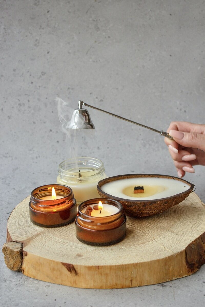 Не задувайте свечи! Если вы задуете свечу и потом зажжете ее снова – истинного аромата вы не почувствуете, к нему примешается запах тлеющего фитиля. 🔸Для того, чтобы правильно потушить свечу, используется крышечка, которой просто закрыть свечу: она погаснет в течение 5 секунд. 🔸Если крышечка в вашей свече не предусмотрена – можно использовать специальный гаситель или тушитель, который внешне напоминает колокольчик. 🔸В нашем интернет-магазине представлены как крышки собственного производства для арома свечей из дерева, так и пламегасители