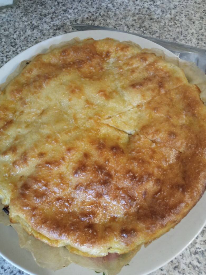 Ингредиенты: Вода, Мука, Картофель, Лук, Растительное масло (+1-2 для обжаривания), Сахар, Дрожжи сухие, Соль , Перец чёрный молотый Способ приготовления: Насыпьте муку в глубокую миску. Добавьте дрожжи и сахар. Добавьте теплую воду, растительное масло и щепотку соли. Перемешайте все до однородного состояния. Тесто должно быть по густоте примерно как на оладьи. Накройте его полотенцем и оставьте для подъема в теплом месте. Картофель очистите и нарежьте тонкими кружочками. Отварите картофель в кипящей подсоленной воде в течение трех минут. Лук нарежьте полукольцами и обжарьте до мягкости. Дно формы для выпечки застелите пергаментом, смажьте дно и бока маслом и присыпьте мукой или манкой. Тесто к тому времени уже поднялось, зрительно разделите его на две части. Половину вылейте в форму. Уложите на тесто подготовленный картофель, соль и перец добавьте по вкусу. Уложите на тесто подготовленный картофель, соль и перец добавьте по вкусу. Укройте картофель луком. Вылейте сверху оставшееся тес