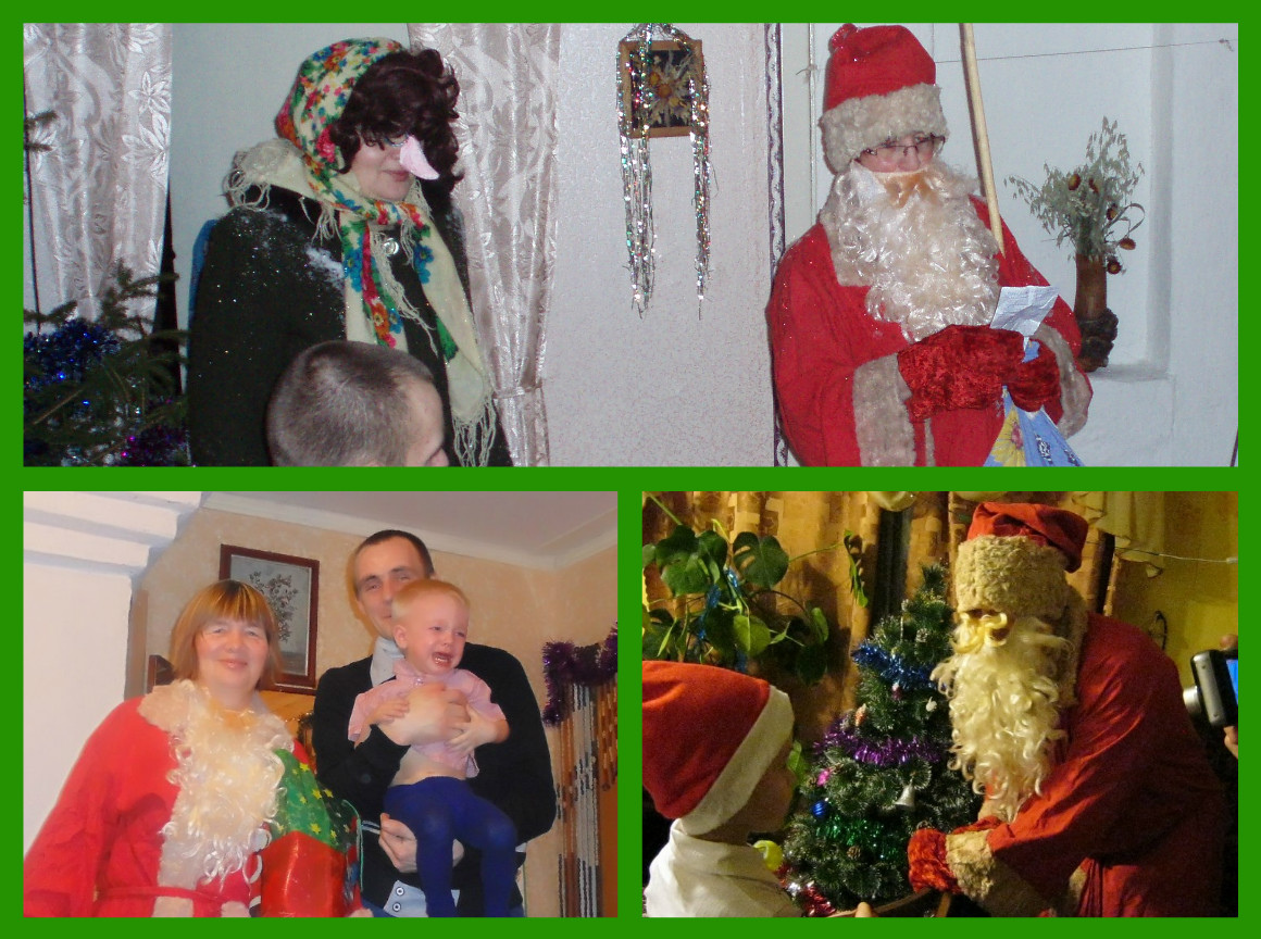 И вот наш папа, переодевшись в костюм Деда Мороза, приехал на снегоходе к дому с мешком, полным подарков от профсоюзной организации. Он шумно вошёл в дом, поздравил всех с наступающим праздником. Спросил, как зовут детей, как они учатся, помогают ли дома родителям? Затем попросил прочитать стихи. Сын, волнуясь, прочитал стихотворение про зиму, дедушка подарил ему игрушечный пистолет и сладкий подарок. Дочь тоже рассказала стишок, получила книжку в подарок и сладости.