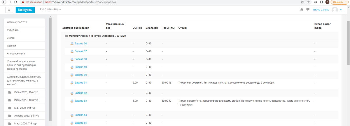 Конкурс Квантика по математике это больше про решение олимпиадных задач по математике : геометрия (планиметрия), комбинаторика, логика (рыцари - лжецы) и т.д.