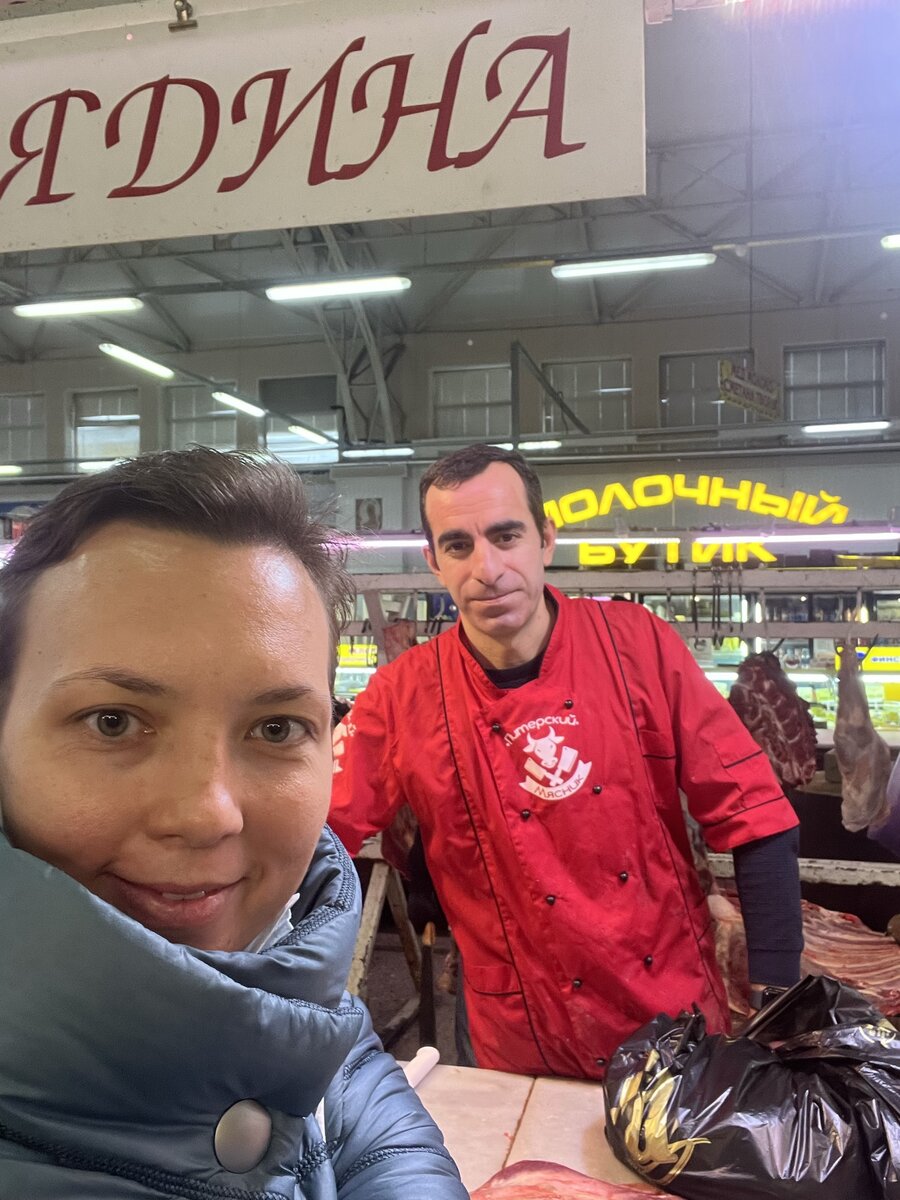 У моих родителей долгое время был ресторан в тогдашней Астане. Сейчас город называется Нурсултан. С тех пор я усвоила одну истину: лучшие продукты НИКОГДА не лежат на прилавке. И как бы хорошо Вы не разбирались в выборе чего угодно - это не приблизит Вас к тому, чтобы купить самый лакомый кусок. Нужно выстраивать отношения с поставщиками. Не просто знать, как зовут Вашего продавца, но и не забывать поздравить с Днём Рождения… До февраля этого года в Петербурге у меня не был решён вопрос с качественным мясом. Пока в Кулинарной Школе Дарья Черненко не посоветовала магазин «Питерский мясник» на Полюстровском рынке. Естественно я сразу отправилась туда в поисках Джаббара (продавца, который засветился в роликах кулинарной школы). Нет необходимости знать названия той или иной части говядины, если есть свой продавец. Я просто озвучила что именно собираюсь готовить: Кстати, прилавка как такового у Джаббара нет. И мясо там почти не лежит. Зато я заметила, куда отправились свежие тушки барашк