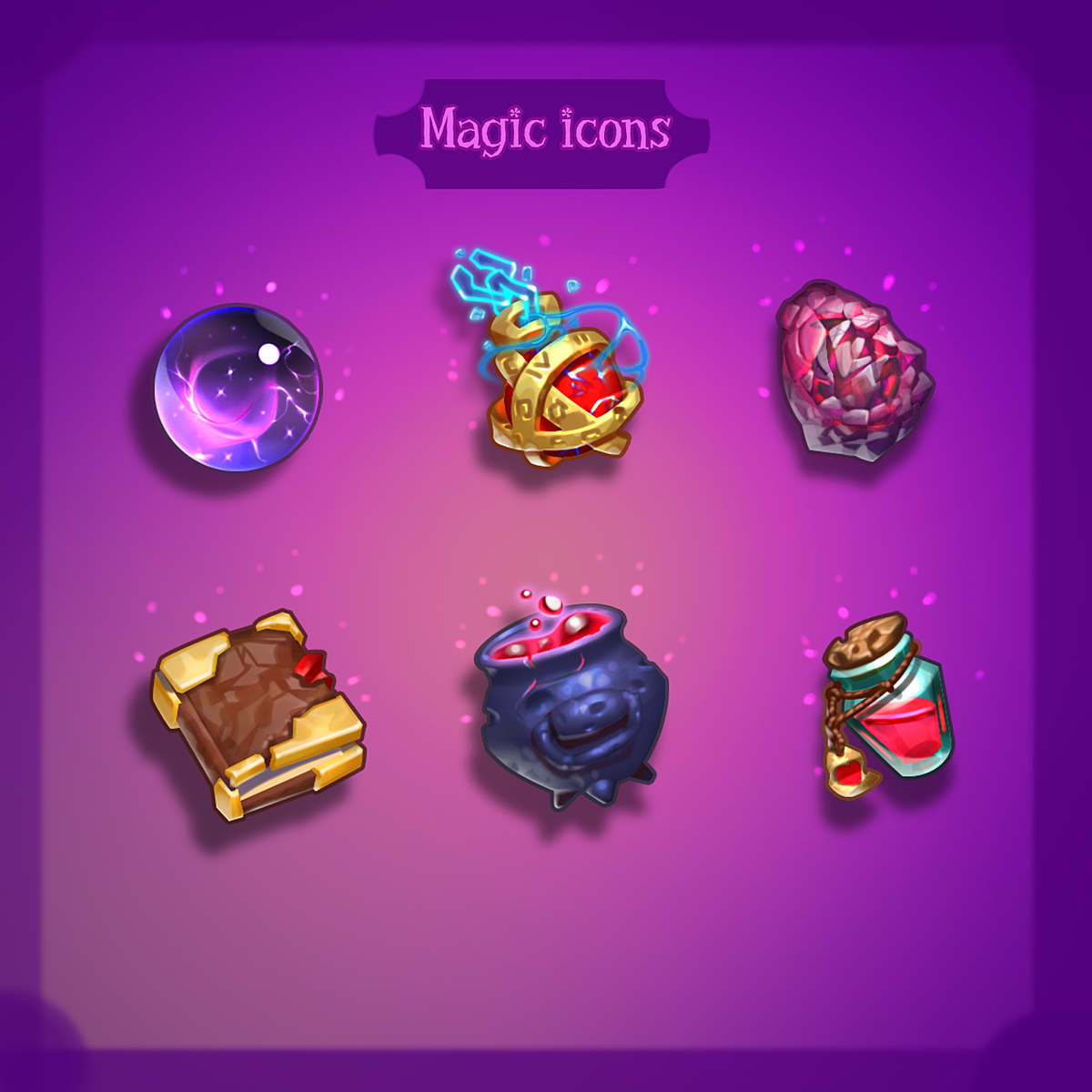Игровые иконки магических предметов. Первый пак иконок из 6: P.s. буду использовать статьи для публикации своих арт-работ, так как посты не набирают буквально ничего, в отличии от статей #art #artwork #game #gamedev #magic #ui #книга #концепт-арт #зелье #эффекты