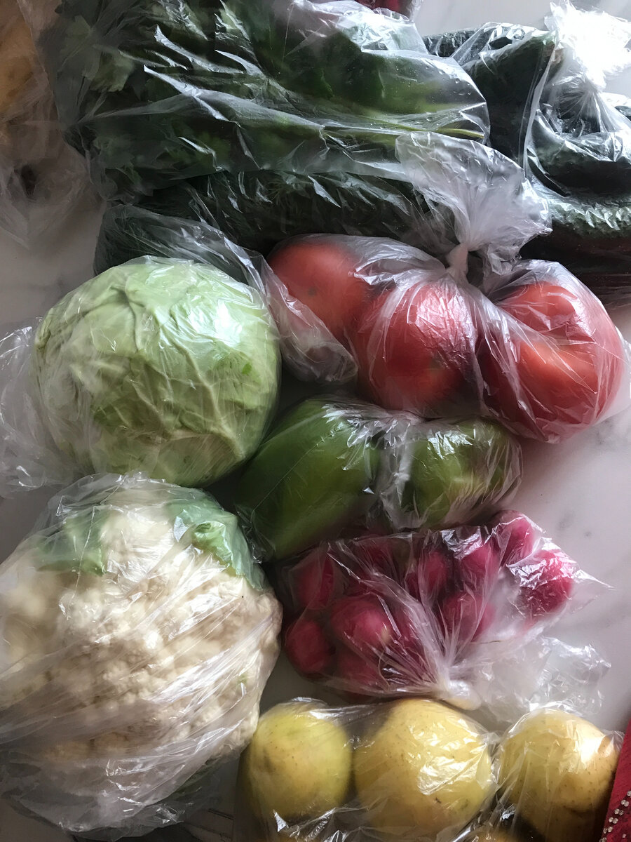 Цены в Краснодарском крае на продукты, фрукты-овощи, бытовую химию Сегодня хотелось бы немного затронуть тему цен. Мы проживаем в станице Каневской Краснодарского края, станица наша районная, большая, не курортная. У нас, как и в любых других станицах и городах края есть сетевые и частные продуктовые и хозяйственные магазины, рынки, магазины овощи-фрукты и другие, вообщем, проблем с закупками/покупками и ассортиментом нет. Так же в местных чатах полно объявлений о продаже домашних продуктов: творог, молоко,сыр, масло, мясо, фрукты, овощи и т.д. и т.п. Итак, приступим))) И начнём с овощей! Сегодня 14 июня 2022 г. Капустка цветная в нашем овощном магазине стоит 59 р за кг., капустка молодая 25 р за кг., яблоко Голден - 99 р за кг., укроп и петрушка по 210 р за кг., зеленый перчик - 149 р за кг., огурчики - 49 р за кг., помидоры местные - 77 р за кг., редис - 67 р за кг. И вот такой приличный наборчик овощей и яблочек обошёлся нам в 342 рубля. Морковь крупненькая и чумазенькая стоит 45