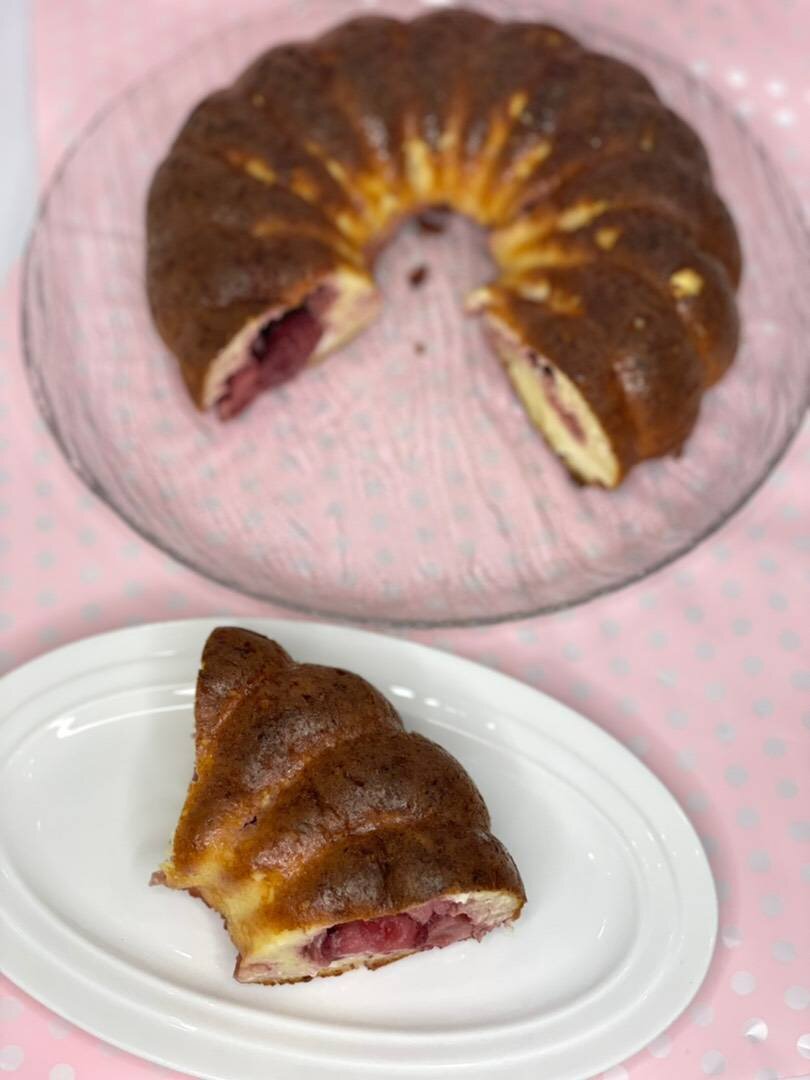 Сейчас как раз сезон клубники!!! Мне этот кекс по вкусу больше вареники напомнил😍 Что-то на вкусном))) #летнееменю Ингредиенты: Рисовая мука, Яйцо, Творог, Разрыхлитель, Сахарзам, Клубника Способ приготовления: Перебиваем блендером творог и яйца. Просеиваем муку и разрыхлитель. Добавляем сахарзам. Перемешиваем. Клубнику моем, слегка просушиваем бумажным полотенцем. Режем на крупные кусочки. Маленькие ягоды оставляем целыми. Выкладываем в форму для запекания слоями. 1/2 часть творожной массы, делая бортики, затем клубнику и сверху оставшуюся творожную смесь. Выпекаем 40 минут в разогретой до 170t духовке. Извлекаем из формы после частичного остывания. Кекс слегка осядет в объёме. Это нормально. Приятного аппетита ❤️