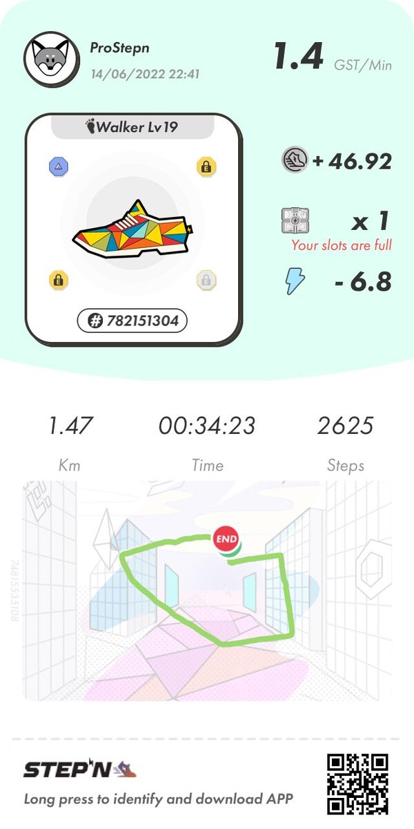 👟 Сеть bsc walker ⚡️ Энергия 6,8 📶 Уровень 19 🏃🏻 Заработок: 46,92gst/24,87$ 🛠 Ремонт: 7,8gst/4,13$ 💰 Прибыль: 39,12gst/20,74$ --- Курс GST в sol = 0,27$ Курс GST в bsc = 0,53$ Возвращаю энергию в привычное время, по ночам и утром не удобно ходить, поэтому пока не полную трачу. С апом закончил, пока приторможу на 19 уровне. Мест под сундуки нету, поэтому сгорел. === Следить за мной в Telegram | Vk | VC || Гайд по STEPN || 🎓 Обучение ⚠ Дисклеймер! Не финансовая рекомендация! Это просто мой эксперимент. DYOR!