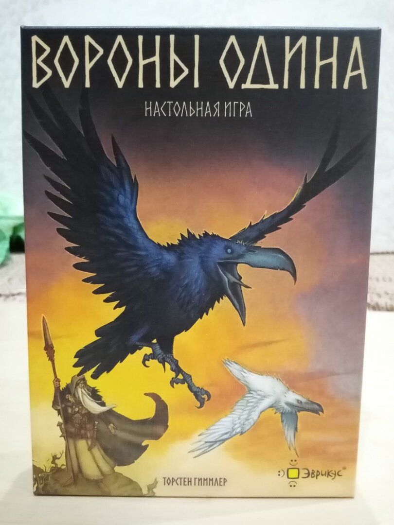 Жили да у Одина два веселых ворона, один - черный, другой - белый, два веселых ворона. И отправлялись они поутру облетать Землю. Кто из них сегодня окажется быстрее - выясним в настольной игре "Вороны Одина". "Вороны Одина" - дуэльная настольная игра-гонка. С помощью карт местности игрокам необходимо облететь вокруг Земли, опередив при этом соперника. Так-же в игре существуют карты бога Локи, которые позволят упростить задачу себе, либо сделать пакость сопернику. В коробке с игрой находятся правила, три стопки карт и две фигурки воронов. Все сделано качественно, но никаких излишеств. Сама коробка компактная, считаю за плюс. Вороны рассчитаны только на двоих игроков, время партии минут 10-15. Еще отмечу что для раскладки местности (Земли) требуется довольно длинная площадка, около метра. Правила простые, изучаются быстро. Вроде о самой игре сказать больше нечего, остались только эмоции и они положительные. Игра очень порадовала. Великолепная дуэлька за которую хочется садиться снова
