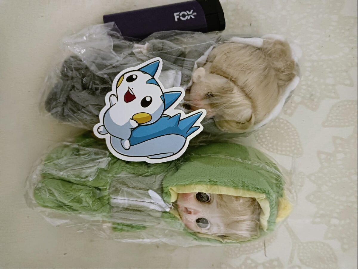 Недавно получила с али две мини-куклы. Головы похожи на баболи, а тела гораздо меньше — подделка тела, которое я тоже как-то заказывала (а то в свою очередь вариация на тему обитсу). В куклы были упакованы в пупырчатый пакет, каждая еще в своем пакете, в подарок положили наклейку с покемоном (как потом оказалось три, чуть не выкинула их с упаковкой). Сами куколки приятные, головы крепятся на простое крепление без якоря, легко сменить. Тело легкое, пластиковое, меньше баболи, голова прошита в два кружка, но выглядит чуть качественней тела, Самый интересный элемент куклы — аутфит. Кугуруми в виде разных животных пошиты весьма неплохо, хоть и не идеально. Расстёгиваются. На баболи не налез. Ну и самое главное — головы я тут же сняла и продала, а тела и костюмы достались головам нендороидов. Когда-то это был один Гарри Поттер, но я долепила его лицам разные прически. Теперь это Альбус-Северус и Скорпиус Малфой. По-моему вышло очень мило, голова перевешивает, но она и с предыдущим "оригин