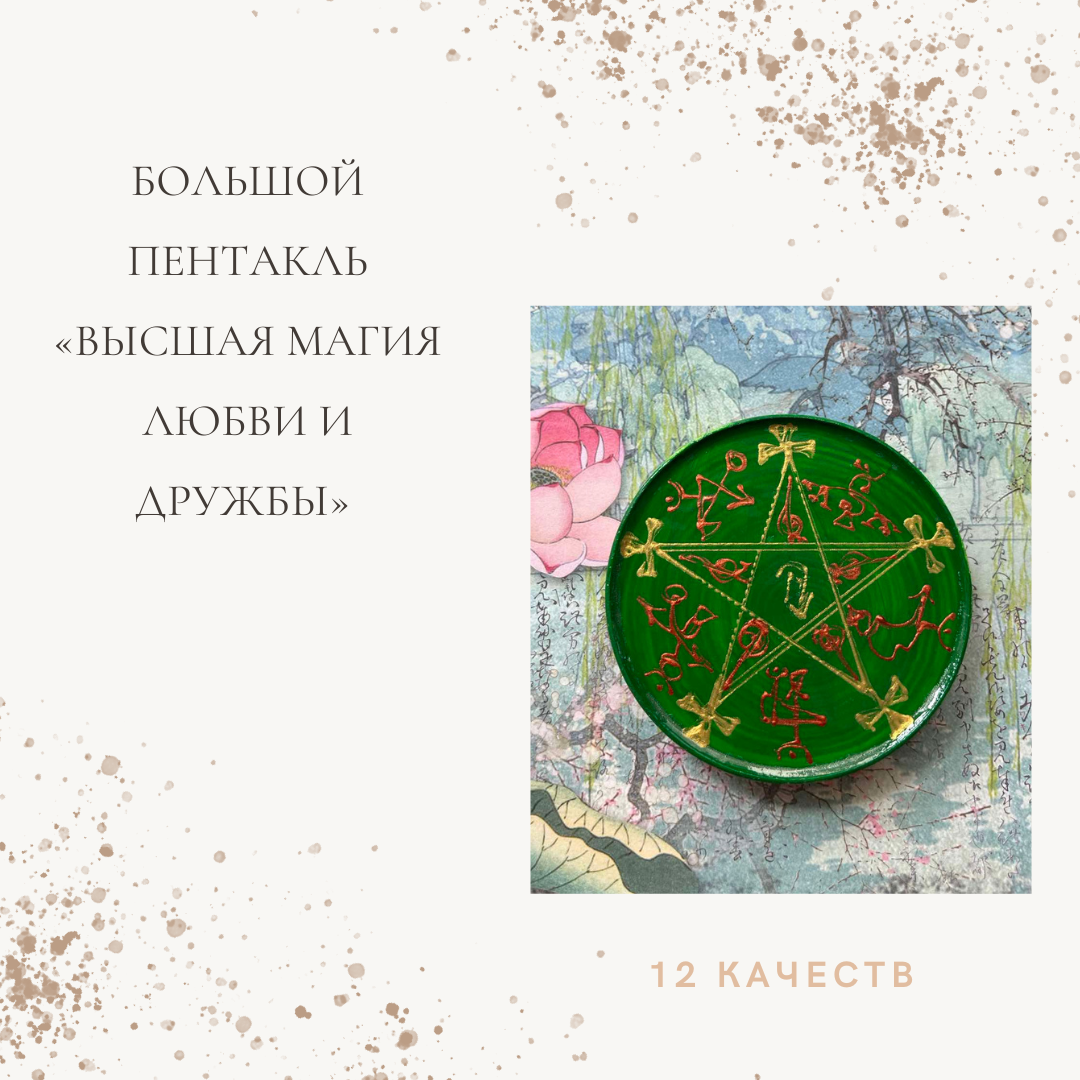 Большой Пентакль «Высшая Магия Любви и Дружбы» От Гениев – Покровителей знака Тельца. Планета Венера. Планета Венера. Большой Пентакль «Высшая Магия Любви и Дружбы» - это высокоэффективный магический артефакт только для Мастеров Магии, имеющих опыт ментального и энергоинформационного взаимодействия с Высшими Учителями. Артефакт дает возможность Мастеру Магии получать не только обучающую информацию непосредственно от перечисленных ниже Гениев - Покровителей, но и полноценную помощь и поддержку от них во время любой магической работы. Подробнее 💥 https://magic-icon.ru/product/bolshoj-pentakl-vysshaya-magiya-lyubvi-i-druzhby-ot-geniev-pokrovitelej-znaka-telcza-planeta-venera-planeta-venera/