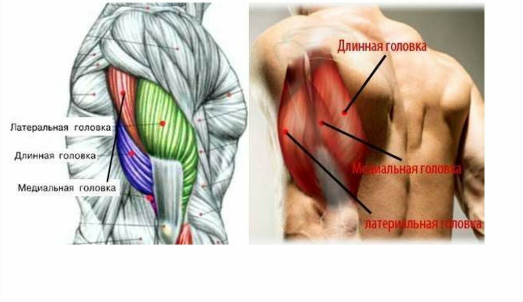 Длинная головка трицепса начинается от подсуставного бугорка лопатки и крепится к локтевому отростку локтевой кости. Это та головка, которая находится ближе к туловищу. Прокачка длинной головки трицепса. Хоть трицепс и занимает заднюю поверхность плеча, но прорабатывая мышцу полностью, даже при виде спереди трицепс будет дополнять бицепс и формировать гармонию мышечной массы руки. Неразвитый трицепс будет бросаться в глаза при виде с боку или сзади. Так же нельзя уделять внимание лишь одному из пучков трицепса. Это будет не эстетично. Данная головки длиннее остальных и отвечает за движение руки назад и ее приведение к туловищу. Обычные разгибания в кроссовере не подойдут. Необходимо выполнять разгибание рук из-за головы и выполнять полную амплитуду движения. Упражнения для прокачки длинной головки трицепса. Тут стоит сразу обратить внимание, что упражнение также задействуют и другие головки трицепса. Поэтому надо уделить внимание постановке рук. Важно так же подбирать вес на 10-15