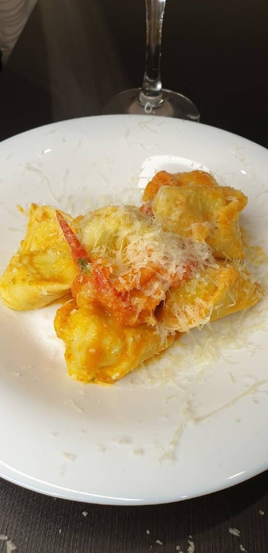 Итальянские пельмени xD #летнееменю #равиоли #видеорецепт #паста #сыр #черри #рикотта #вкусно #готовка #еда Ингредиенты: Мука , Яйца , Оливковое масло , Шпинат , Рикотта , Мускатный орех , Соль, перец , Чеснок , Помидоры черри , Сыр пармезан Способ приготовления: Смешать муку, 3-4 яйца и немного оливкового масла и замешивать тесто в течение 20-ти минут. Завернуть тесто в пищевую пленку и отправить в холодильник на 2 часа. Для начинки смешать рикотту, бланшированный шпинат, 1 яйцо, соль, перец и мускатный орех. Для соуса обжарить на оливковом масле чеснок, добавить черри и томить на маленьком огне. Для начинки смешать рикоту, бланшированный шпинат, 1 яйцо, соль, перец и мускатный орех. Тесто тонко раскатать, нарезать квадратиками, выложить начинку и сформировать равиоли. Равиоли варить в подсоленной воде до состояния аль денте. Добавить к томатам воду от равиолей и выложить сами равиоли. Добавить натертый пармезан, перемешать и томить 10 минут. Подавать с бокалом белого вина и присыпав