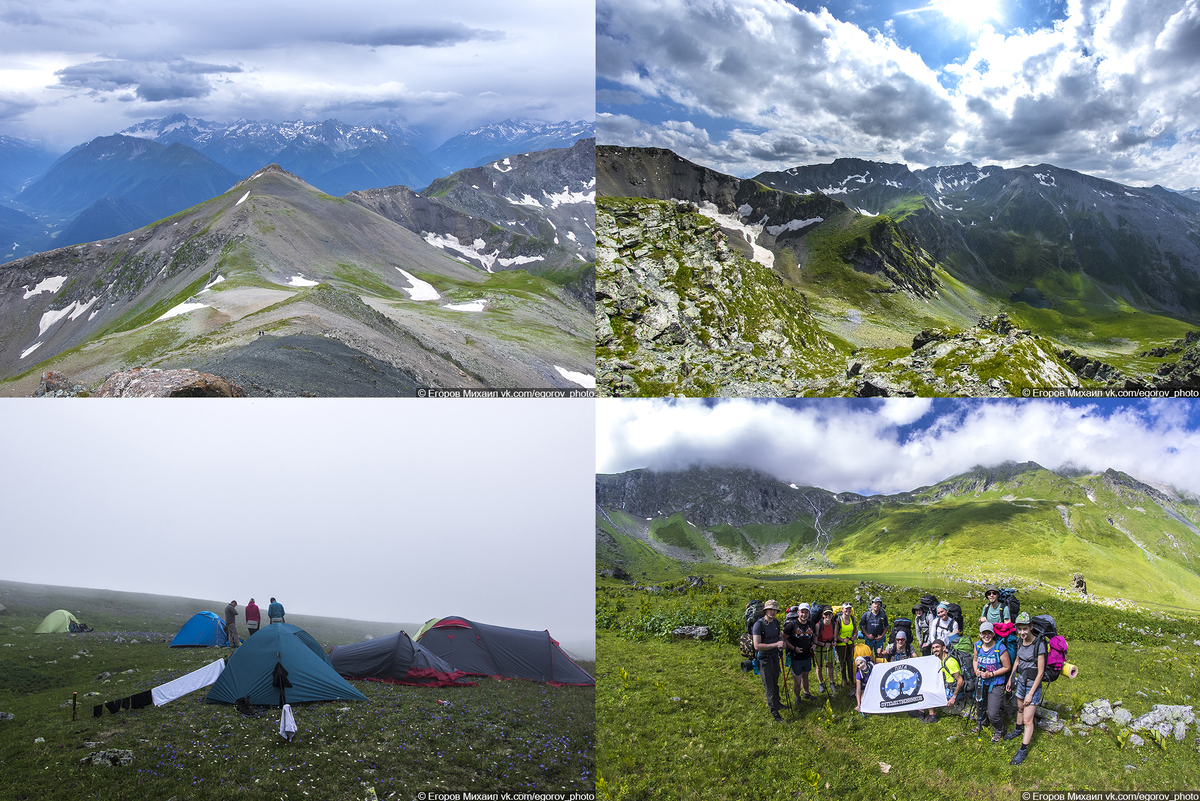 Описать словами насколько красиво в горах – невозможно. Надеюсь, что фотографии хоть наполовину передадут те эмоции, которые наполняли нас на высоте 3182 метра над уровнем моря. Слева виднеется Пик Пионер, а чуть дальше главный Кавказский хребет, который делит Кавказ на две части - Закавказье и Северный Кавказ.