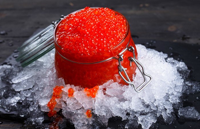Но настоящей качественной икры на рынке очень мало. К ненатуральной икре принадлежит белковая. Эта икра также питательная, но, конечно, не имеет такого вкуса и ценных свойств, как натуральная. И, безусловно, значительно дешевле. Когда икра еще в банке, отличить белковую от натуральной довольно трудно. И все таки разница между ними есть. Белковая икра иметь неустойчивую консистенцию, может склеиваться, икринки могут быть разного размера и оттенка.