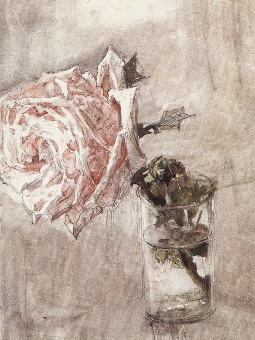 Одна из таких – «Роза в стакане» Михаила Врубеля, написанная простыми графитовыми карандашами.