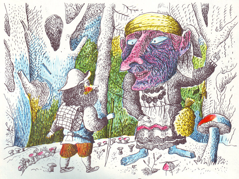 С начала все удмурты жили вместе. Молодой от старика учился и богу молиться, и суд судить. И был тогда народ такой, что о чем ни спроси его, на все ответить мог. А когда удмуртов стало много, то разошлись они по разным местам. И сходились вместе только молиться или судиться. А потом разошлись так далеко, что не могли уже собираться, и старик со стариком, сходясь, не могли припомнить все как следует. Вот однажды на общей сходке порешили: чтобы не забыть все — записать порядок молений и судов. Надрали бересты, обрезали ее и сшили в книгу, а потом в этой книге тамгами изобразили, как молитвы творить, как порядок править. Оставили книгу под присмотром жреца на большом белом камне в том месте, куда собирались на общую молитву и которое, как казалось, было в центре поселений. Если какой старик забывал молитву или порядок суда, он шел к белому камню, прочитывал в книге и опять знал. Но люди, после того как написали книгу, стали реже приносить жертв инмару, потому что прежде старики чаще соб