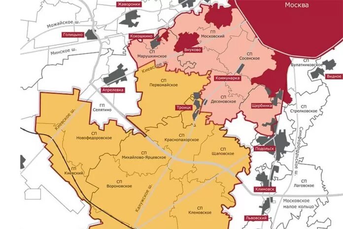 Более 20 млн кв. м жилой недвижимости возвели в Новой Москве после присоединения, рассказал в своем выступлении 11 июня 2022 года, посвященном первому юбилею присоединения, глава Департамента развития новых территорий Владимир Жидкин. Новые территории – Новомосковский и Троицкий автономные округа были включены в границы Москвы как ответ городских властей на загруженность инфраструктуры центральной части столицы. Градостроительная деятельность в этих округах направлена на то, чтобы снизить маятниковую нагрузку на транспорт и сделать новые территории более независимыми от центра. В результате площадь мегаполиса выросла в 2,4 раза. Площадь самой Новой Москвы составляет 148 тыс. га. В число самых больших административных единиц Новой Москвы входят города Троицк, Московский и Щербинка, а также поселки Ватутинки, Киевский и другие. Главными деловыми хабами региона считаются Румянцево, Коммунарка и Внуково. Сразу после присоединения в Новой Москве проживало менее 250 тыс. человек. Бурное раз