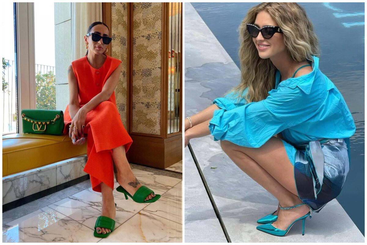 Напоминаю, что в 2022 году очень актуален цвет и именно туфли самый простой способ внедрить его в свой гардероб. Яркая обувь особенно легко впишется в нецветной гардероб. В цветной тоже, сейчас есть много цветовых схем сочетания цветов.