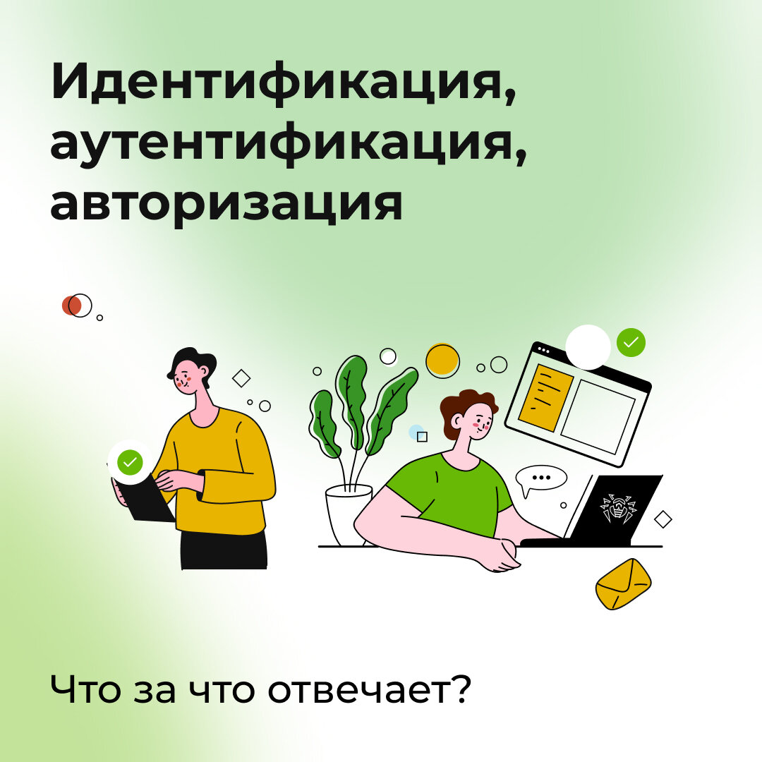 Когда посетитель приходит в офис компании «Доктор Веб», он представляется охраннику на входе. Таким образом человек идентифицирует себя — сообщает, кто он такой. Охраннику неважно, зачем он пришел — работать, забрать посылку или на встречу. Он должен просто проверить, что этот человек находится в списке допущенных к проходу.