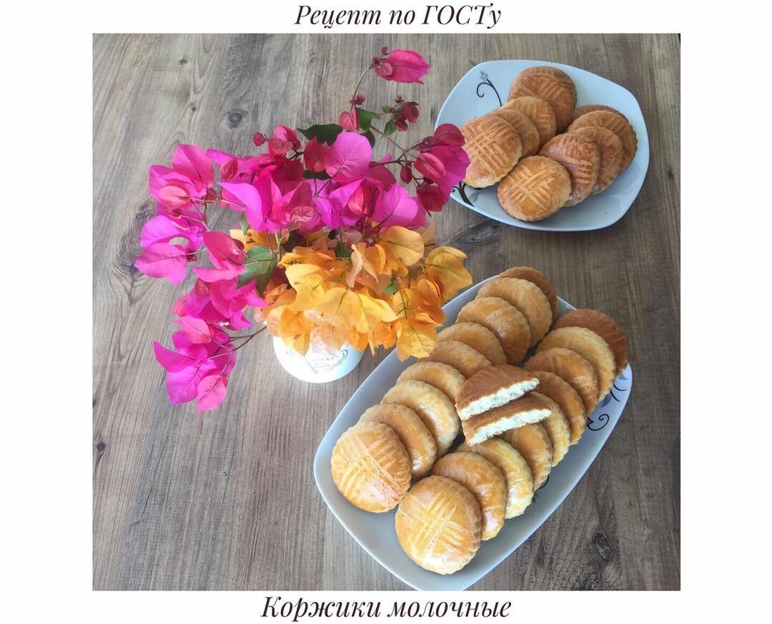 Те самые молочные коржики из советской школьной столовой! Ингредиенты: гр маргарина (сливочного масла), гр сахара (можно и меньше, кто не любит очень сладкое), яйцо, гр молока, чайной ложки соды, чайной ложки соли, гр разрыхлитель, ванилин, муки, яичный желток для смазывания Способ приготовления: Все продукты должны быть комнатной температуры. В чашу миксера выкладываем размягченное масло, высыпаем весь сахар и минут 10 взбиваем. Добавляем яйцо, продолжаем взбивать ещё минут пять. К молоку добавляем соду, разрыхлитель, ванилин, соль. Все перемешиваем и вливаем к смеси в миксер. Частями вводим просеянную муку. Готовое тесто отправляем в холодильник минут на 10-15. Раскатываем пласт толщиной 6-7 мм. Вырезаем кружочки. Перекладываем на противень застеленный пергаментной бумагой. Смазываем коржики желтком. Выпекаем в духовке разогретой до 220 гр в режиме верх-низ на середине. Идеально на полдник детям с кружкой молока!