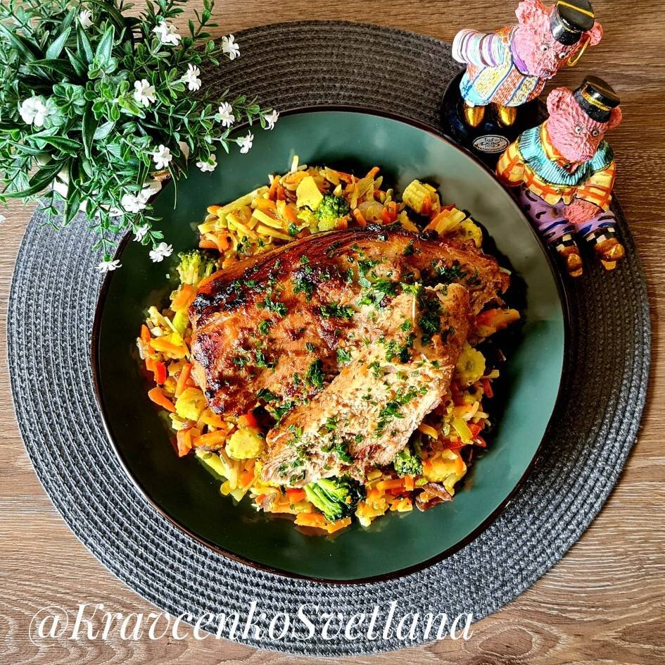 #летнееменю Мясо с ягодой – великолепное сочетание, мимо которого невозможно пройти. За вдохновение спасибо @cook_18619190 Ингредиенты: свинина, соль, перец, специи, оливковое масло, чеснок, клюква Способ приготовления: Взобьем в блендере клюкву с маслом, чесноком и специями. Сделаем в мясе небольшие надрезы и со всех сторон обмажем его маринадом. Маринуем мясо около часа. Оставляем ягодную массу на мясе и запекаем вместе с ней. Запекаем в рукаве 1,5 часа при 200 градусах. Подаем свинину горячей с гарниром или в холодном виде в составе закусок. Приятного аппетита!