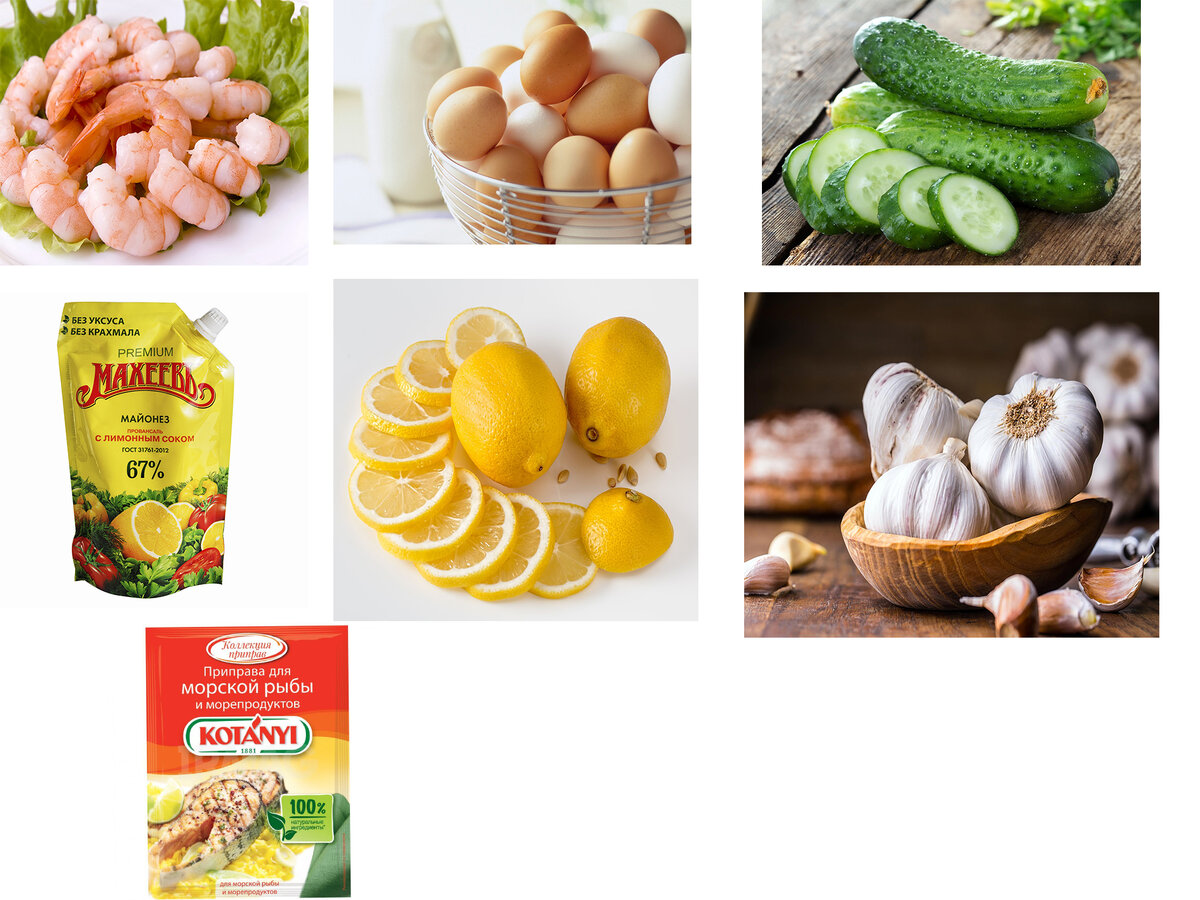 Есть любители креветок? Лично я готова готовить различные блюда, в которых главным ингредиентом будут креветки. Сегодня на ужин я решила побаловать себя и своих домочадцев вкусным и легким салатом из креветок. Ингредиенты: 1. 400 грамм креветок 2. Лимон 3. 5 яиц 4. Свежий огурец 5. Майонез 6. Приправа для морепродуктов 7. Также если хотите можете добавить немного чеснока для вкуса Начинаем готовить: 1. Для начала ставим варить яйца. Как они сварятся опускаем их в холодную воду, чтобы они остыли. 2. Пока яйца остывают, готовим креветки. Очищаем креветки и обжариваем их на сковороде, не добавляйте много подсолнечного масла. Выжимаем сок лимона прям в сковороду, где готовятся креветки. 3. Креветки готовы, даем им время, чтобы они остыли. 4. Огурец нарезаем соломкой. 5. Яйца нарезаем кубиками. 6. Добавляем креветки. 7. Режим мелко чеснок или можете воспользоваться чеснокодавилкой. Чеснок добавляете по-своему желанию. 8. Все ингредиенты собираем в удобной миске. 9. Добавляем майонез и припр