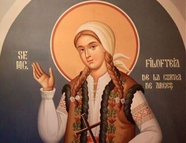 Юная Филофтея ждет верующих в часовне монастыря Куртя-де-Арджеш, чтобы с благоговением и верой ходатайствовать перед благодатным Господом о молитвах всех, кто переступает порог святой обители.