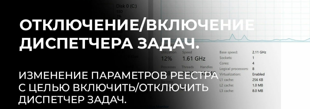 Как включить/отключить диспетчер задач? В системах Windows имеется множество полезных инструментов, без которых невозможно её нормальное функционирование. Например, тот же диспетчер задач, который позволяет отслеживать процессы в системе. Чтобы включить/выключить диспетчер задач можно сделать следующее: 1. Первым делом открываем редактор реестра посредством нажатия сочетания клавиш WIN + R и выполняем команду: regedit. 2. Затем переходим по следующему пути: КомпьютерHKEY_CURRENT_USERSOFTWAREMicrosoftWindowsCurrentVersionPoliciesSystem. 3. Если у вас нет раздела System, то его необходимо создать. 4. Находим ключ DisableTaskMgr ключ или создаем его "Параметр DWORD (32 бита)", после чего меняем его значение. Так, значение параметра 1 позволит отключить диспетчер задач, а 0 - наоборот включить.