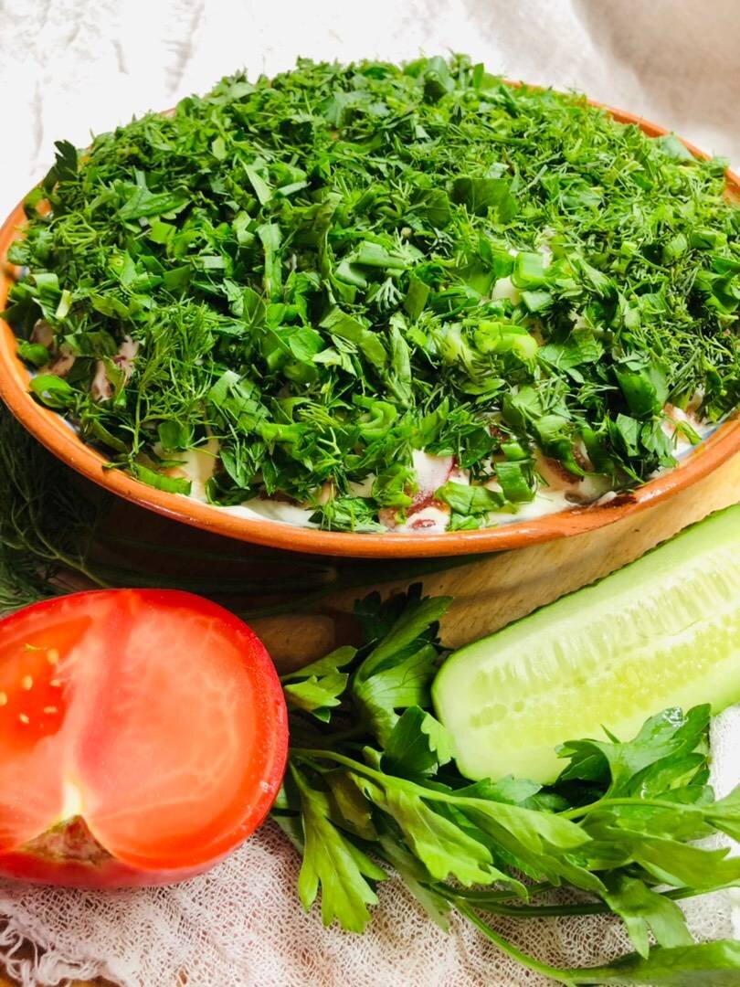 Этот салат всегда съедается гостями первым. Его лучше делать накануне, чтобы он мог немного спрессоваться и пропитаться. Он сытный, свежий. С ним можно сидеть на диете. Вы получите белок и клетчатку в полном объёме. #салатссыром #салат Ингредиенты: куриных отварных бедра, сыр любой полутвёрдый, помидоров, огурцов, петрушки, укропа, зелёного лука, репчатого лука, майонеза, соль Способ приготовления: Берём широкое не очень глубокое блюдо. На дно выкладывается нарезанная курица, затем сыр на мелкой тёрке. Тонкий слой майонеза. Следом нарезанный соломкой огурец, немного лука. Тонкий слой майонеза. Затем помидор соломкой, и немного лука. Если Вам нужна соль, то можете солить каждый слой. Тонкий слой майонеза. Завершающий верхний слой обильно покрываем рубленой зеленью. Убираем в холодильник, свободно накрыв сверху пищевой пленкой, чтобы не заветрилась зелень.