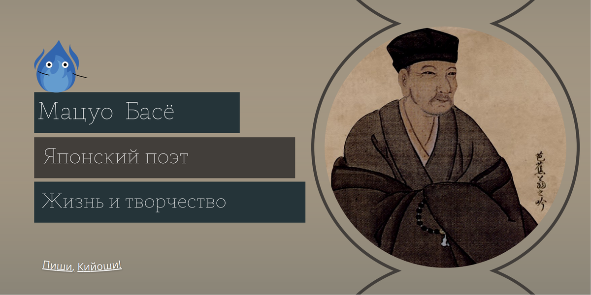 Мацуо Басё (1644 – 1694 гг.) – великий японский поэт, который заложил основы написания японского стиха хайку (хокку). Именно при Басё японская поэзия стала такой, какой мы видим её сейчас. Важно сказать, что Басё – это литературный псевдоним автора. На самом же деле он носил много имён в разные участки своей жизни: Кинсаку, Хансити, Тоситоро, Тюэмон, Дзинситоро. Часто его упоминают как Мацуо Дзинситоро. Басё родился в провинции Ига в 1644 году. Его отец был самураем, который преподавал каллиграфию обеспеченным людям Японии. С детства Басё начал и сам заниматься каллиграфией, а позже получил домашнее образование. В это же время он начал увлекаться китайскими поэтами, к примеру, Ду Фу. Басё начал писать хокку во время службы самураю Тодо Ёситаде. Вместе с ним они в 1665 году сочинили стострофный хайкай (юмористическое стихотворение). В 1672 году поэт поселился в Эдо (ныне Токио). Здесь он посадил банан. Возможно, что из этого эпизода своей жизни он взял идею своего псевдонима, ведь «басё