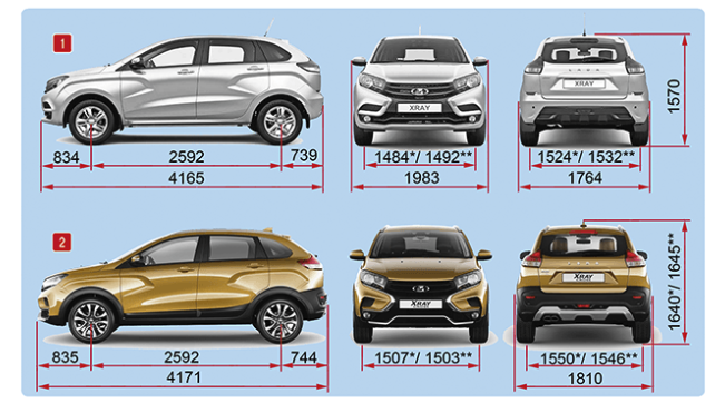 Общие сведенья об автомобиле Премьера концепта LADA XRAY сегмента B-SUV состоялась в августе 2014 года на Московском автосалоне. Предсерийный прототип паркетного кроссовера показали в августе 2015 года на Off-Road Show в Москве, а серийное производство в Тольятти развернуто с ноября 2015 года. Старт продаж состоялся 14 февраля 2016 года. Cтайлинг XRAY выполнен в новом фирменном X-стиле LADA. Технически модель LADA XRAY является клоном хэтчбека Renault Sandero Stepway II, созданного на той же платформе B0. Автомобили предлагают с тремя вариантами бензиновых двигателей: Н4М (1,6 л); ВАЗ-21129 (1,6 л) и ВАЗ-21179 (1,8 л). Все двигатели 16-клапанные, расположены в моторном отсеке поперечно. Трансмиссия выполнена по переднеприводной схеме. Коробка передач – механическая пятиступенчатая, роботизированная пятиступенчатая или автоматическая (вариатор с гидротрансформатором). Примечание: Трансмиссия с роботизированной коробкой передач и электромеханическим приводом выключения сцепления получ