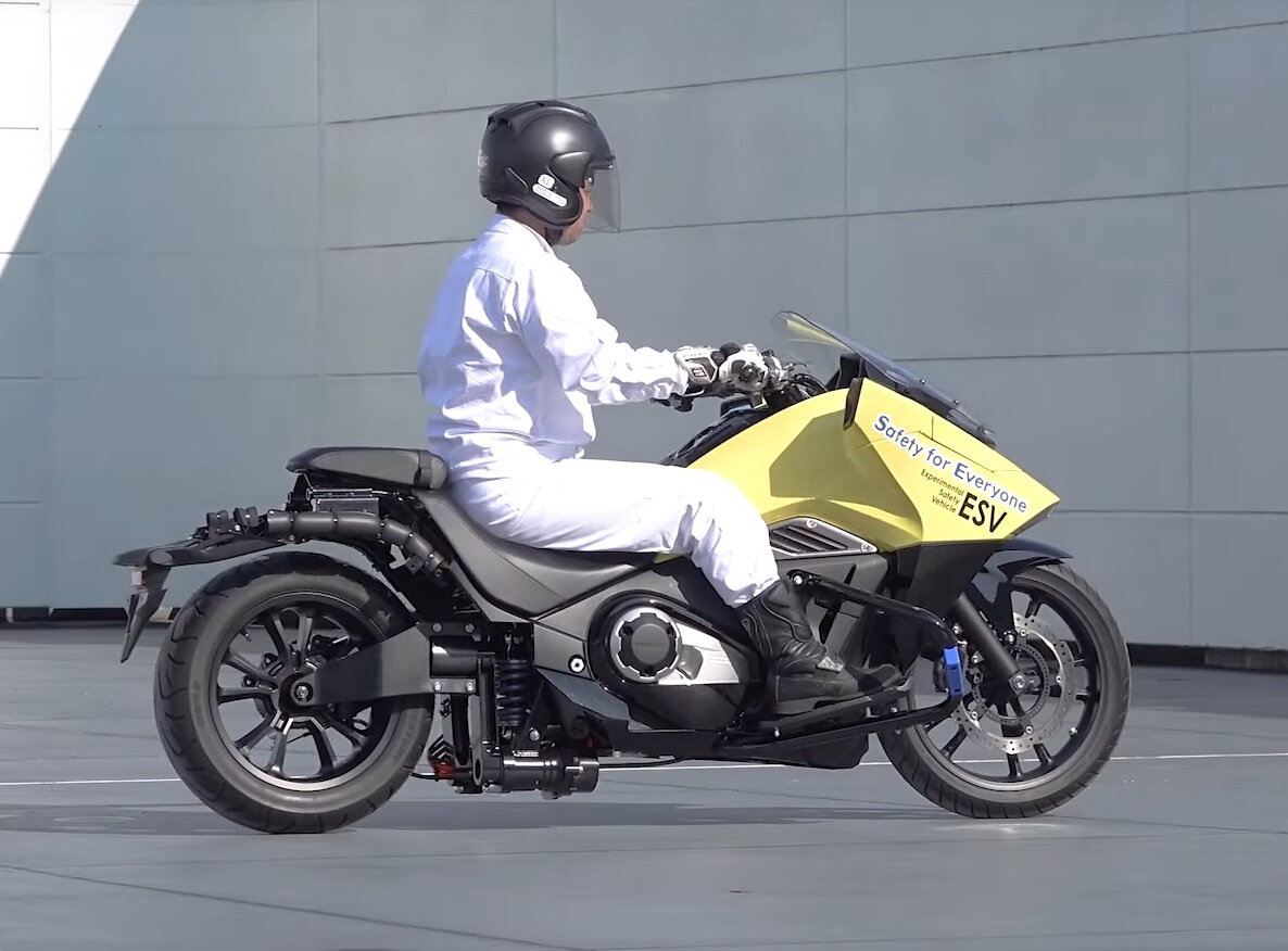Honda продолжает разработку мотоцикла-«неваляшки», способного не только сохранять вертикальное положение (балансировать) при полной остановке, но также совершать самостоятельные перемещения, например, для автоматической парковки в условиях дефицита пространства на городских улицах.
