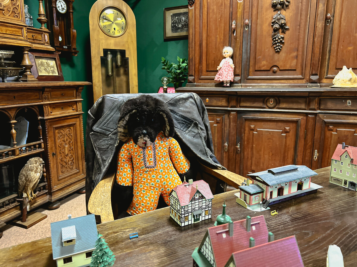 Доброго времени суток, дорогие читатели. Вы у меня на канале, где я делюсь заметками о Германии, путешествиях, жизни. В этой статье расскажу об интересном месте в Санкт-Петербурге. Недавно наткнулась на винтажный магазин в одном из красных кирпичных зданий на Курляндской улице. P. S. Обожаю индустриальную кирпичную архитектуру. В последнее время стало модным реставрировать советские постройки и делать из них крутые пространства. Это радует. Ангар с раритетом открылся не так давно, находится на последнем этаже одного из кирпичных зданий, принадлежавших территории завода Степана Разина. Кто хочет поностальгировать по былым временам или купить антиквариат, место вам понравится. Вход бесплатный. Посетителей встречает собака «Филя», сидящая за столом в кресле. Вокруг множества предметов старины: Идя дальше, оказываешься в большом помещении. Первое, что бросается в глаза, большое количество сервантов и буфетов. Их, кстати, почти все можно купить. Всё разрешают трогать и рассматривать. Кух