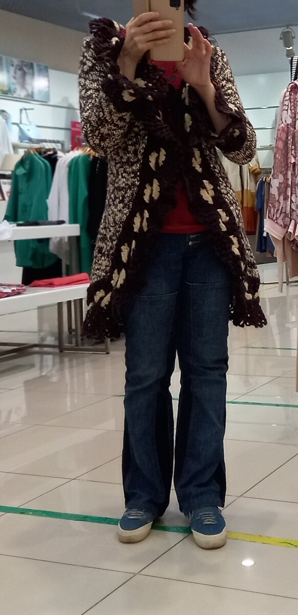 Неожиданные, подчас, вещи находишь в секонде. Например, вязаный кардиган с прекрасным составом: 50% шерсти, 35% хлопка. От французского бренда Eleven, создающего модели в стиле рок-н-ролл, для молодых и дерзких, умеющих обьединять шик и китч с простотой. (Не пытаюсь примазаться к славной когорте, о бренде и его модных изысканиях узнала только после покупки.) Мне образ с ним показался расслабленным, а сам кардиган напомнил своей формой старинный сюртук. Приглянулось его качество, необычность фасона и отделки. Вывязанная кружевная кайма по подолу, полочке, на вороте переходящая в отложной воротничок, на рукавах в пышные манжеты. Завязывается впереди. Особенно трогательно выглядят в нем запястья, сразу браслеты просятся. А у вас какие ассоциации вызывает образ? Он для работы, или приятного расслабления в компании? Одевала с джинсами, хочу еще с платьем выгулять. Должно неплохо смотреться, как по-вашему? Кардиганы этой фирмы в интернет магазинах не нашла, а вот свитера идут от 2500 с 7