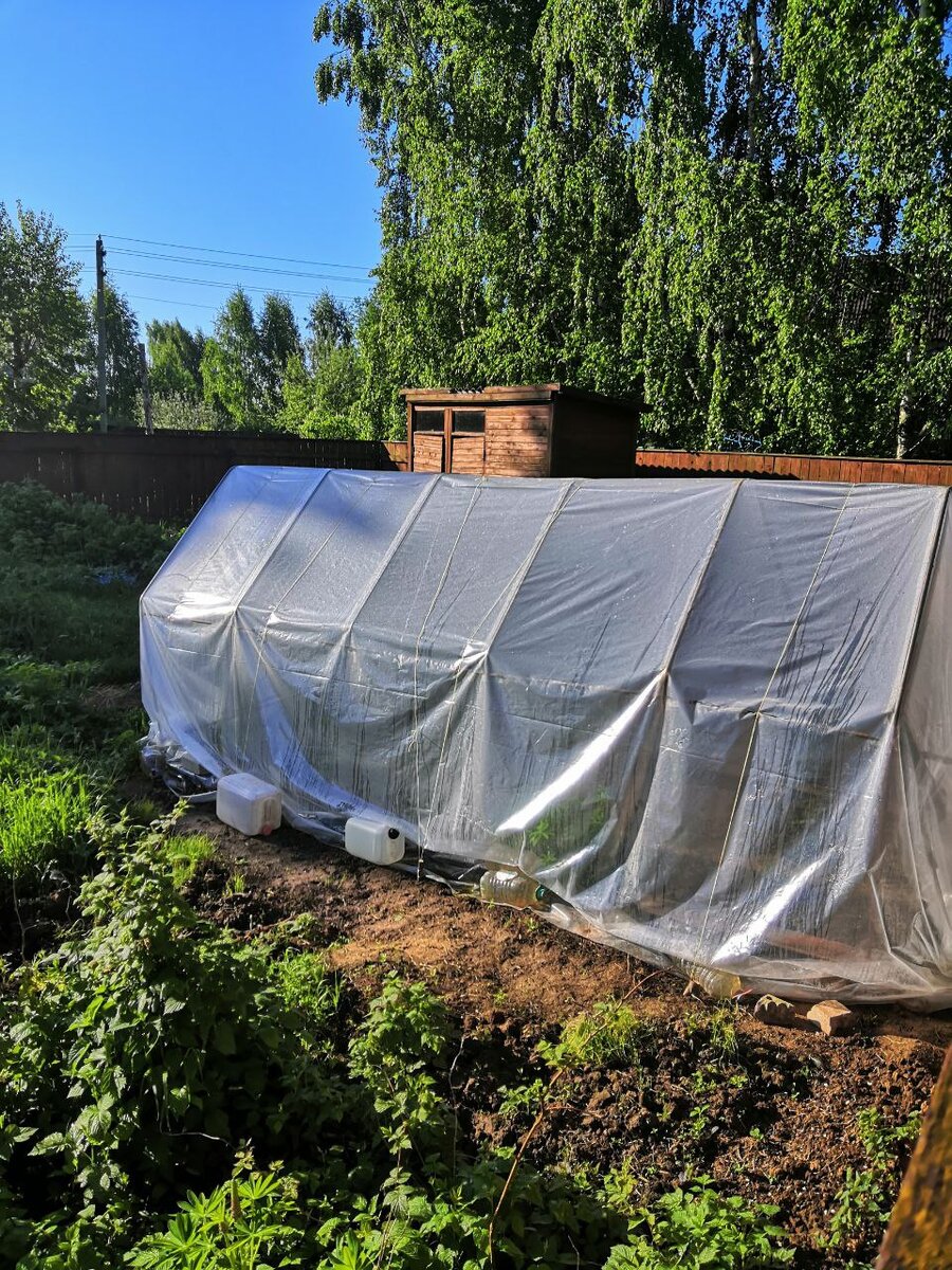 Помидоры и огурцы в средней полосе России обычно выращивают в теплицах, чтобы приблизить условия их созревания к жаркому югу. Варианта два — сделать парник своими руками или купить собранную теплицу. Сравниваем «дешево VS дорого». Сделать что-то своими руками — трудозатратный, но экономный вариант. Для постройки будущей теплицы понадобятся деревянные опоры, которые надо вкопать в землю примерно на треть длины. Как только они стоят прочно и не шатаются, можно приступать к сооружению теплицы. Возьмите простую пищевую пленку (рулон стоит около 1000 рублей) и начните обматывать ей конструкцию снизу вверх. Когда доберетесь до верхушки, скрепите пленку пластиковыми стяжками или клейкой лентой. Сверху можно положить прямоугольную крышу из скрепленных между собой досок, которые также обмотаны пищевой пленкой. Останется только сделать вход в теплицу — разрежьте ножницами одну из плёночных стен до основания. В такой самодельной теплице земля будет постепенно прогреваться, создавая идеальные усло