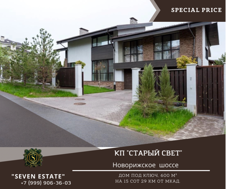 Старый Свет КП дом под ключ- 360м2 Расположение: 29 км от МКАД Новорижское шоссе Стоимость: $ 2 014 010, ₽ 115 000 000 инфраструктура посёлка: 17 Га, Лес, Прогулочная зона, Количество домов 165 Площадь: 360 м² Участок: 15 соток Отделка: Под ключ с мебелью Тип участка: Лесной Коммуникации: Есть Описание Предлагаем на продажу коттедж с панорамными окнами и современным ремонтом. Посёлок находится вдали от шумных трасс и прекрасно вписан в природное окружение - здесь вы сможете почувствовать гармонию загородной жизни и наслаждаться чистым воздухом. Коммуникации центральные. Поэтажное описание Продуманная планировка дома позволяет комфортно разместиться семье и гостям. В доме 5 спален, высокие потолки, второй свет в гостиной, камин. На ухоженном участке расположена детская площадка, шикарная баня из клееного бруса 279 м2, бассейн с подогревом, противотоком и подсветкой, зона барбекю. Высажены туи, гортензии, сделан автополив, освещение, дорожки. Инфраструктура На территории поселка свой дет